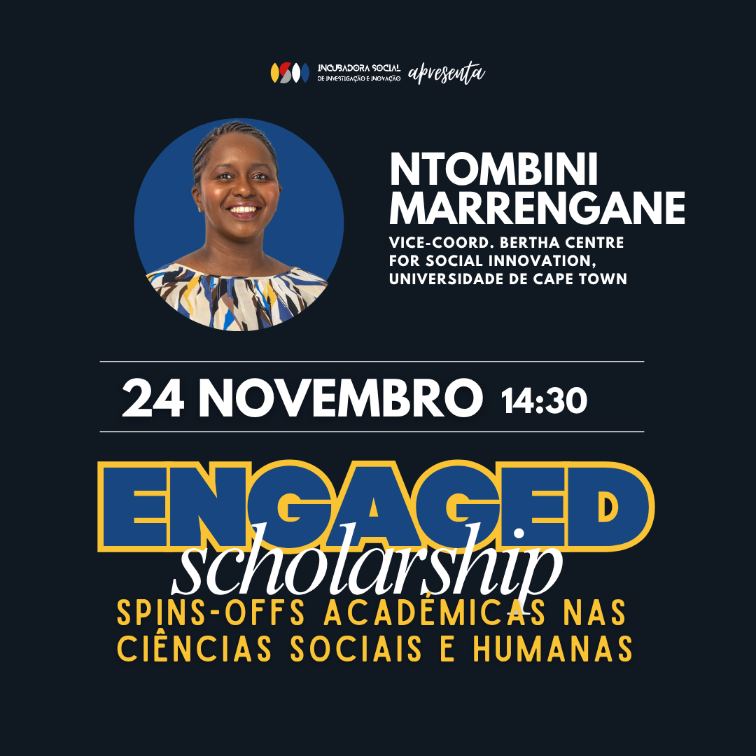 Sessão com Ntombini Marrengane, Vice-Diretora da Bertha Centre for Social Innovation na Universidade de Cape Town. Sessão em língua inglesa.